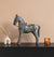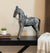 This Antique Wooden Horse Figurine is a stunning example of heritage craftsmanship, meticulously carved from solid wood and finished in a weathered black tone. Adorned with delicate metallic chains and engraved saddle details, it evokes the grandeur of traditional royal processions.
