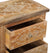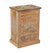 A wooden embossed painted bedside is a small piece of furniture, often designed with artistic craftsmanship and aesthetic appeal. The surface features intricate, raised designs (embossing) that adds texture and depth. These patterns include floral motifs with traditional cultural themes. finished with a thin glossy lacquer, which protects the paint and highlights the wood's grain.Â