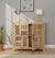 This stunning handcrafted wooden cabinet showcases a beautiful fusion of traditional artistry and modern design. Made from solid mango wood, it features intricately carved lattice panels in an assortment of geometric and floral motifs, reminiscent of classic Indian Jali work. The natural wood grain finish enhances its earthy, rustic charm, making it a versatile storage solution for living rooms, dining areas, or entryways. Equipped with sturdy black metal handles, this piece blends bohemian elegance with functionality, providing ample storage while serving as a striking decorative statement.
