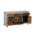 The dresser showcases a classic, aged look, often enhanced by distressed finishes, weathered edges. All drawer fronts and even the door is a vintage piece, carved ages back and the colors are preserved with a coat of laquer to maintain its vintage look. The Grey tone of the outer body fits perfectly with the contrast combination of the aged door and drawers paint.