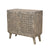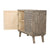 The cabinet doors are adorned with intricate carvings, which include traditional geometrical motifs. The natural grains of solid mango wood effects reflects the detailed handwork of the skilled artisans. The nautical legs stands strong. The sandblasted olive grey finish clubs well with the intricate motifs. The spacious shelves inside the cabinet makes it a functional storage unit.Â