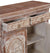 A charming and timeless piece of furniture that reflects the classic craftsmanship of carving. Made from the solid mango wood, the cabinet features a distressed lime finish, showcasing its vintage character and emphasising the natural grain and patina of the wood. Two spacious drawers at the top, ideal for storing smaller items like keys, utensils, or documents. Two cabinet doors below that open to reveal a roomy interior with shelves, perfect for organising larger items or decor. The top adorns with the decorated moulding.