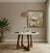 Rooted in natural elegance, the Petra Cross Table brings together the timeless solidity of stone with the sculptural warmth of wood. Its circular Travertino top showcases delicate, organic veining—each piece uniquely shaped by nature—while the intersecting wooden base is finished in a sandblasted black glaze that enhances the grain and texture. The cross-leg silhouette not only provides architectural stability but also evokes a quiet strength and grounded presence. Perfect for modern interiors that value material honesty and enduring form.
