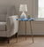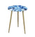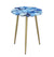A blue agate top side table with iron legs is a striking piece of furniture that combines natural elegance with modern industrial flair. It serves as both a functional table and a conversation-worthy accent, perfect for adding a touch of luxury and intrigue to any space. The tabletop is crafted from blue agate stone, a natural material prized for its mesmerising patterns and vibrant hues. Rich shades of blue, ranging from deep sapphire to light aqua, with intricate veins, swirls, and banding that showcase the stone's organic beauty. The legs are made from metal with glam gold finish.