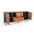 This eye-catching iron and wooden sideboard features a striking herringbone pattern across its three drawers and three doors, showcasing exceptional craftsmanship and design. The natural wood finish highlights the intricate herringbone detailing, while the sturdy iron frame adds an industrial edge, blending rustic charm with modern appeal. The sideboard offers generous storage space, with three spacious drawers for smaller items and three cabinet doors for larger belongings. Perfect for dining rooms, living spaces, or entryways, this sideboard combines practicality with a bold, stylish aesthetic, making it a standout piece for any interior.