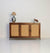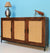 This beautifully handcrafted sideboard blends rustic warmth with modern elegance. Made from solid wood with a deep walnut finish, it features three cane-webbed doors that add a natural, breathable texture. The contrasting black metal legs and handles give it a touch of industrial style, making it a versatile piece for contemporary, bohemian, or farmhouse interiors. The spacious storage compartments inside provide ample room for dining essentials, books, or decorative items. Perfect for living rooms, dining areas, or entryways, this cabinet is a stylish and functional addition to any home.