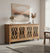 This elegant wooden 4-door sideboard combines functionality with artistic flair, featuring glass panels enhanced by half-round see-through cuttings on each door. The design offers a modern twist, allowing a glimpse of the interior while maintaining a sophisticated aesthetic. The natural wood finish provides warmth and texture, while the curved detailing adds depth and visual interest. With its spacious interior and stylish appearance, this sideboard is ideal for showcasing decorative items or organising essentials, making it a versatile addition to living rooms, dining areas, or hallways.Â