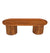 A wooden fluted design oval coffee table is a sophisticated and elegant piece that combines classic craftsmanship with modern design elements. The tabletop features a smooth, oval shape, with fluted vertical grooves carved into the wood on the sturdy bases, creating a textured, ribbed effect. These flutes add depth and visual interest to the table, making it a striking focal point in any room. The natural finish highlights the wood's grain. This coffee table seamlessly blends traditional design with contemporary flair, making it an ideal choice for modern or transitional interiors. Its refined and sculptural form adds a touch of timeless elegance while providing a functional centrepiece for your living space.