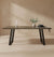 This table is a modern industrial masterpiece, combining a distinctive tilted open-leg brace design with the natural beauty of mango wood. The rectangular tabletop showcases the rich texture and durability of mango wood, arranged in a striking herringbone pattern that adds depth and character. The bold metal base, with its unique slanted supports, not only provides stability but also enhances the table’s contemporary appeal.