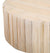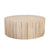 A travertine-finish round coffee table with a ribbed wooden design merges natural elegance with modern textural elements. The tabletop, finished to mimic the subtle veining and creamy tones of travertine stone, offers a smooth, polished look that adds a sophisticated, earthy feel. The vertical grooves of the ribbing add visual interest and depth, contrasting the sleek top with a tactile, architectural base. This table brings a refined, luxurious look to living spaces and complements both modern and transitional interior style